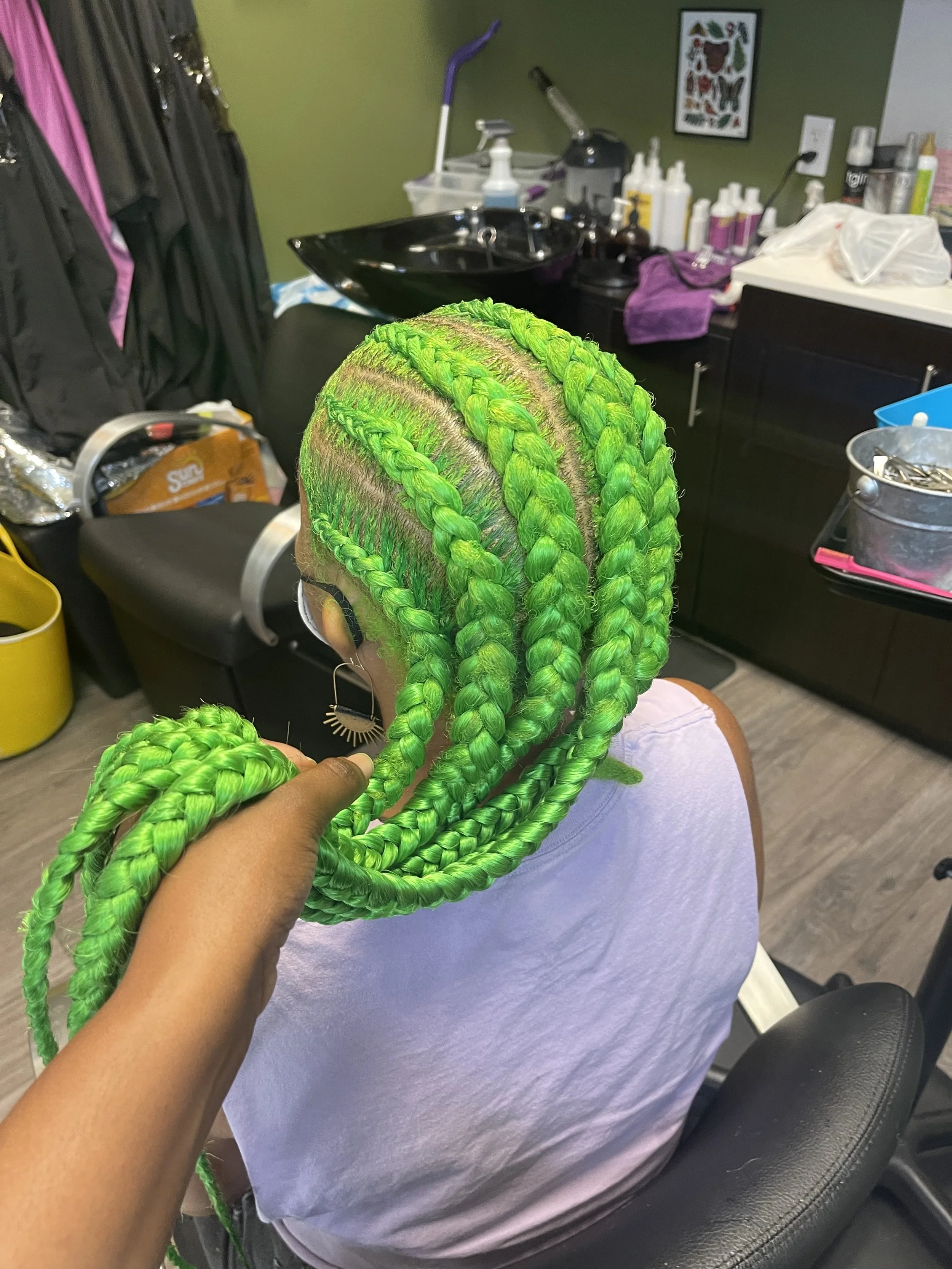 Juneteenth braids: smedium knotless braids in Green Shake, 1B, and Red